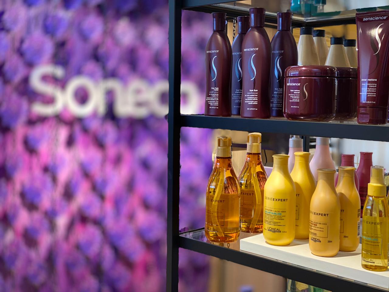 Outro espaço de experiência é o ‘Soneda Studio’, no mezanino, onde a consumidora poderá aplicar, sem nenhum custo, os produtos de coloração que comprou na loja, através de consultoria, é o ‘compre e aplique’, que foi meticulosamente conceituado - é uma área instagramável, composta por um painel todo florido com a logomarca icônica da Soneda e um balanço, para a cliente tirar uma self e poder guardar esse momento de beleza imersiva dentro da loja. Neste espaço, também, é possível agendar uma tricologista, especialista em análise de folículos capilares e couro cabeludo, procedimento que ajuda a construir um prontuário da saúde dos seus cabelos, orientando quais os produtos que irão promover o máximo de benefícios de transformação, um grande diferencial competitivo para o mercado. Outra comodidade é o serviço ‘Clique e Retire’, na qual se compra pelo aplicativo ou internet e retira nos lockers da loja. Todo esse processo de benefícios deverá fidelizar a cliente dentro da jornada de beleza.